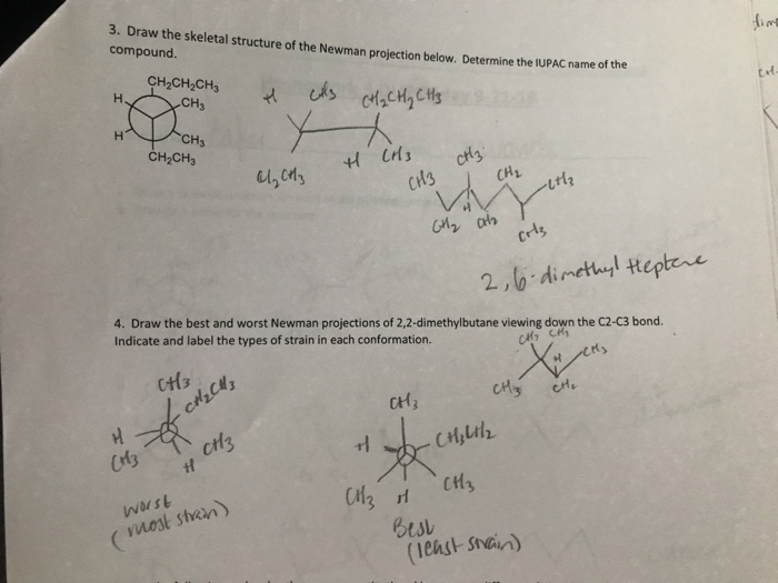 When drawing Newman projections. Okay This problems having Estrada skeletal structures of these Newman projections and then name them. It explains how to draw the newman projections of ethane butan.